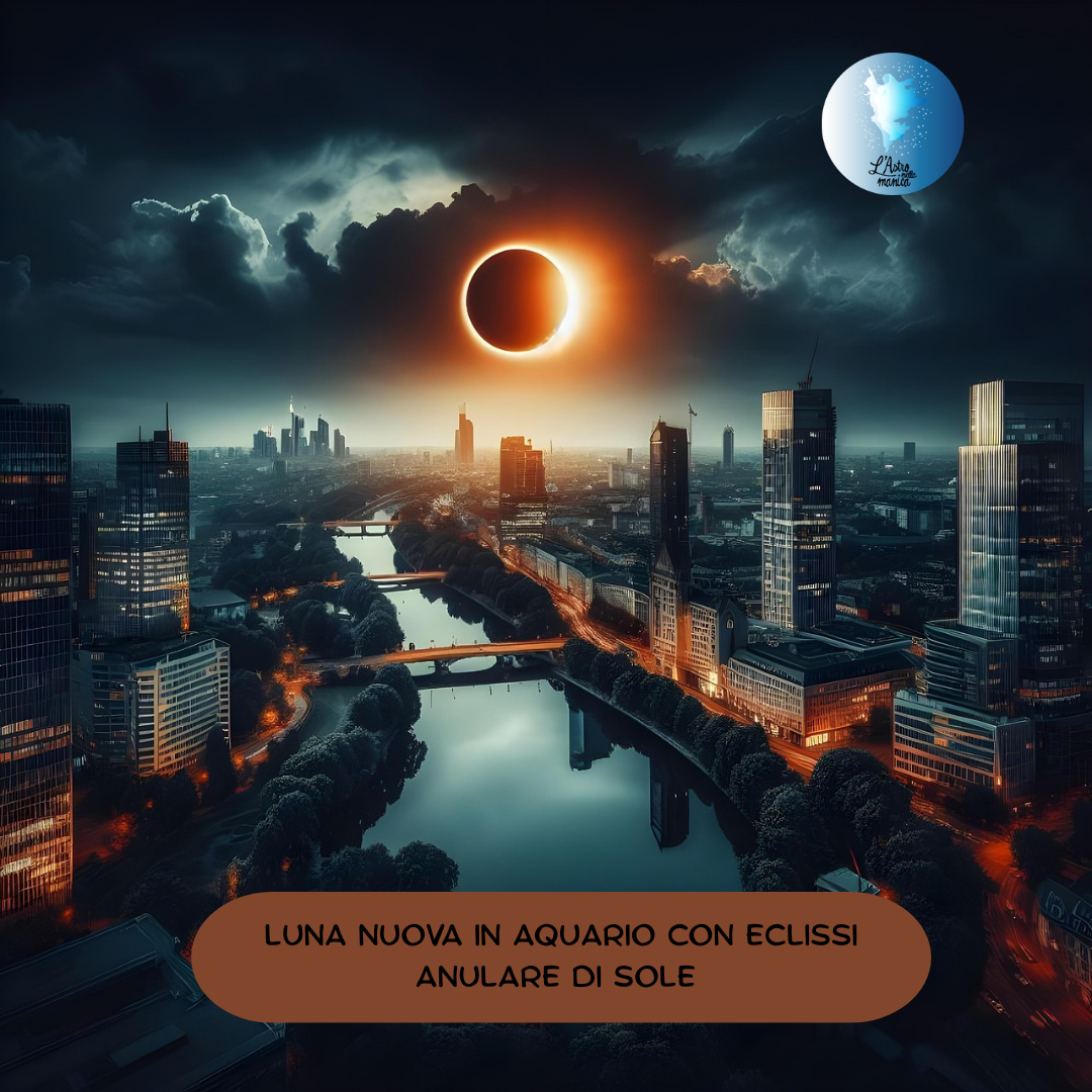 Domani, martedi 17, alle ore 12.02 la Luna si fa Nuova a 28° Aquario e simultaneamente avverrà un’eclissi anulare di Sole. L’eclissi non sarà visibile dall’Italia. Il Novilunio crea una quadratura con Urano, Governatore dell’Aquario e dà avvio ad un importante corridoio che culminerà il 3 marzo in occasione dell’eclissi totale di Luna che accompagnerà il Plenilunio in Vergine