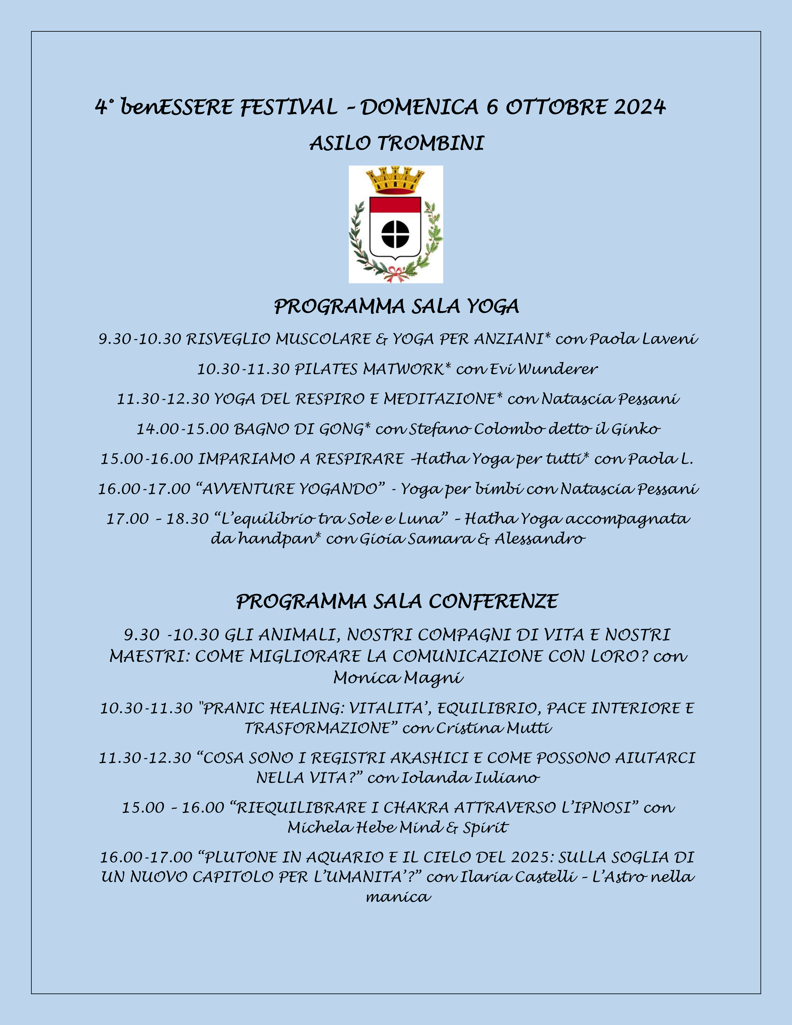 Inoltre, a chi vive nella zona di Milano, segnalo un evento che sto organizzando per domenica 6 ottobre presso il Parco del Castello di Melegnano (MI): il 4° benESSERE Festival. In quell’occasione, terrò una conferenza gratuita sul cielo dei prossimi mesi e sull’energia della Nuova Era che sta per debuttare. Vi aspetto!